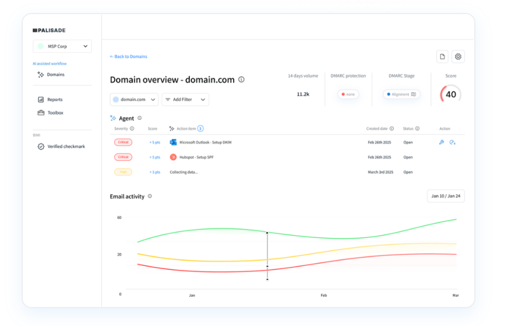 MSPs looking for a simplified DMARC solution for their clients, particularly those with less complex needs, will also find Palisade appealing due to its ease of use. While it can scale to larger organizations, its core strength lies in providing accessible and effective DMARC management for those who prefer clarity over an abundance of advanced features.